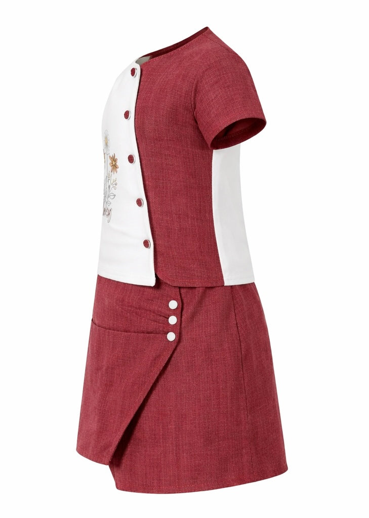 Shop this adorable girls’ two-piece dress set featuring an olive green skirt and half-and-half daisy-printed top. Lightweight, comfy, and perfect for summer outings, picnics, and casual wear.