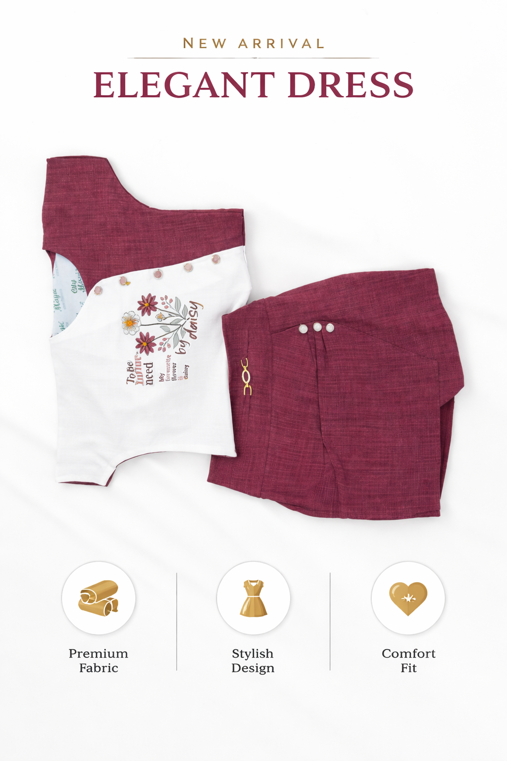 Give your little one a fresh, nature-inspired look with this beautiful Olive Green & White Daisy Dress Set. The top features an eye-catching asymmetrical button design and a charming daisy print, paired with a stylish wrap-style skirt. Made from breathable fabric, this outfit keeps kids cool and comfortable all day long—perfect for playdates, parties, and summer adventures.